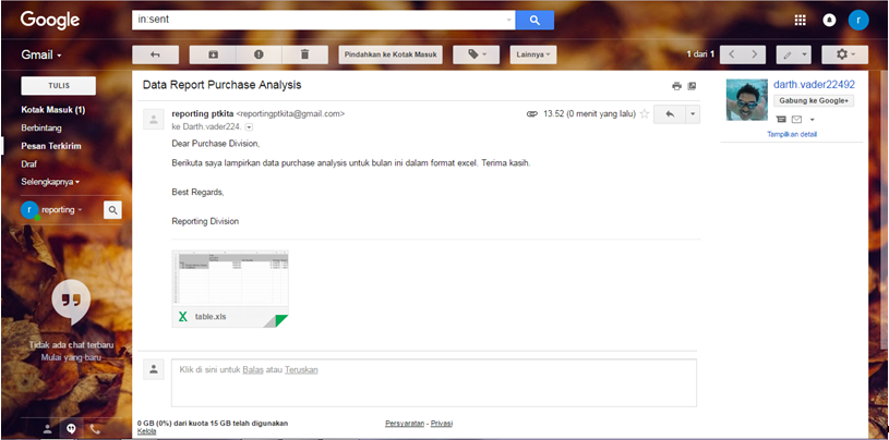 - Setelah itu mengirimkan hasil laporan yang telah diekstrak ke bagian purchasing.